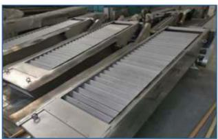 Ecranul scării plăcii de plasă are o aplicabilitate puternică, o structură simplă și o funcționare stabilă. Este ușor de curățat și întreținut. În scenarii industriale specifice, plăcile de grilă ale diferitelor structuri pot fi selectate în funcție de diferite forme și caracteristici de gunoi, care sunt mai profesionale și mai eficiente. Ansamblul său de placă de plasă acoperite cu cauciuc, proiectat modular, formează o etanșare dinamică prin potrivirea precisă a stratului de cauciuc elastic și a șinei de ghidare, împiedicând efectiv pătrunderea particulelor la nivel micron. Această caracteristică o face să funcționeze bine și în scenarii precum separarea reziduurilor de medicamente în apele uzate farmaceutice și screeningul cojilor de fructe în instalațiile de prelucrare a alimentelor.